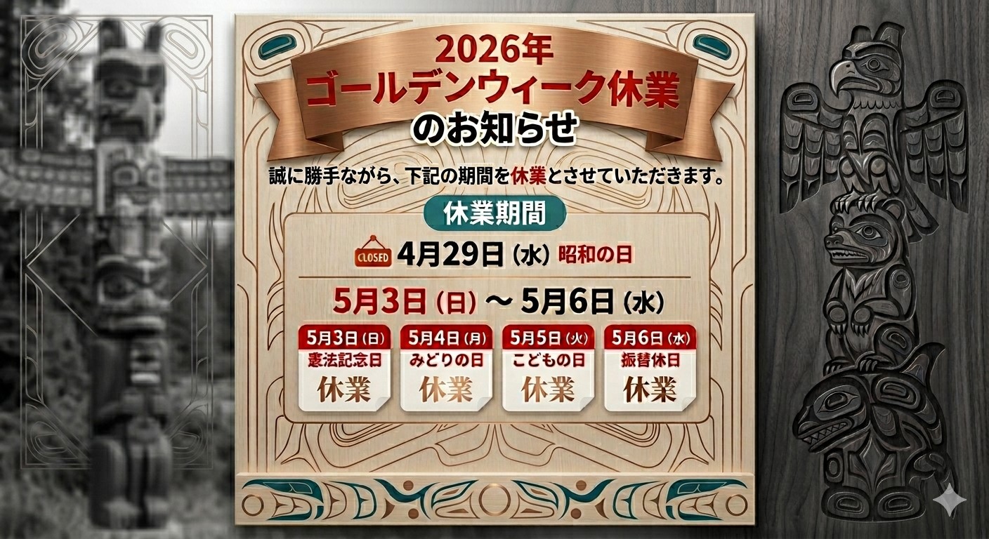 カナダ北西沿岸部ノースウェストコーストインディアンを中心に、アートやジュエリー、雑貨を販売しています彼らファーストネーションズに伝わる独特のアート作品にインスピレーションを感じてください。また弊社のカナディアンネットワークを通じ、カナダのお土産用にメープルシロップやクッキー等の輸入食品を販売しています。下記からお土産のお買い物ページに移動ください。