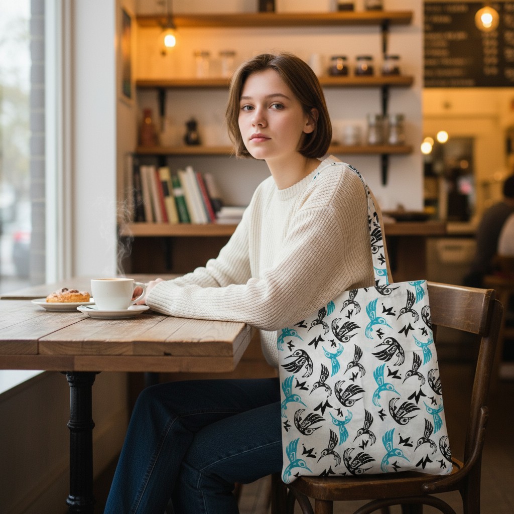 エコバッグ コットン100% トートバッグ 袋 カナダ 先住民 ネイティブ インディアン Bill Helin Hummingbird Blue Cotton Shopping Bag ハミングバード