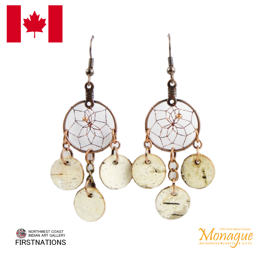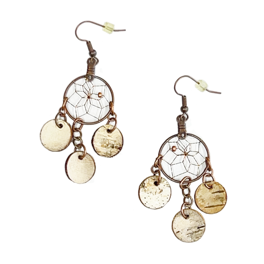 ドリームキャッチャー アクセサリー ピアス 本物 オジブア族 インディアン ハンドメイド 3輪 BIRCH BARK ダングル ピアス