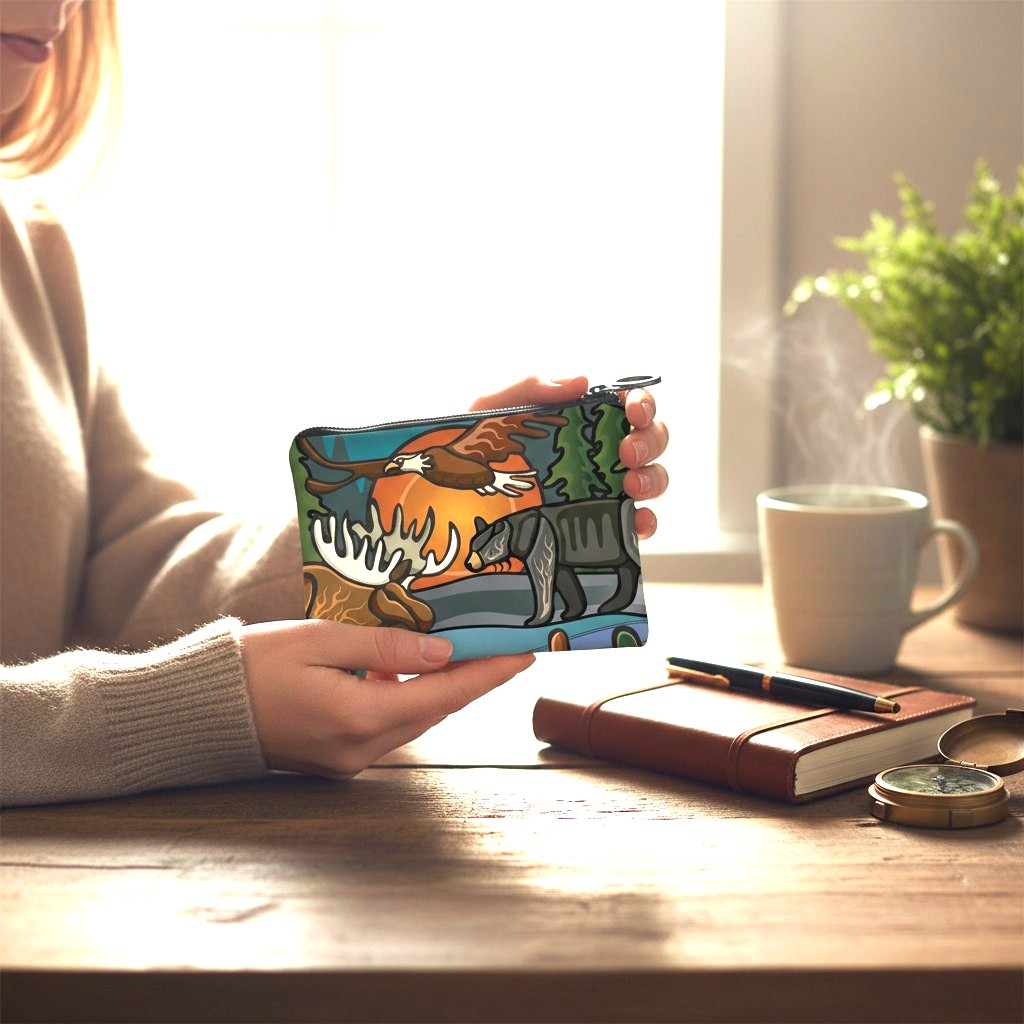 ■商品説明:ネイティブ・ノースウエストのコインケースで、コイン入れや小物入れとしてお使いいただけます。高品質な素材を使用し、先住民族デザインのアートワークをあしらった、機能的でファッショナブルなコインケースです。ポケットやバッグにすっぽり収まるサイズなので、お出かけに最適です。