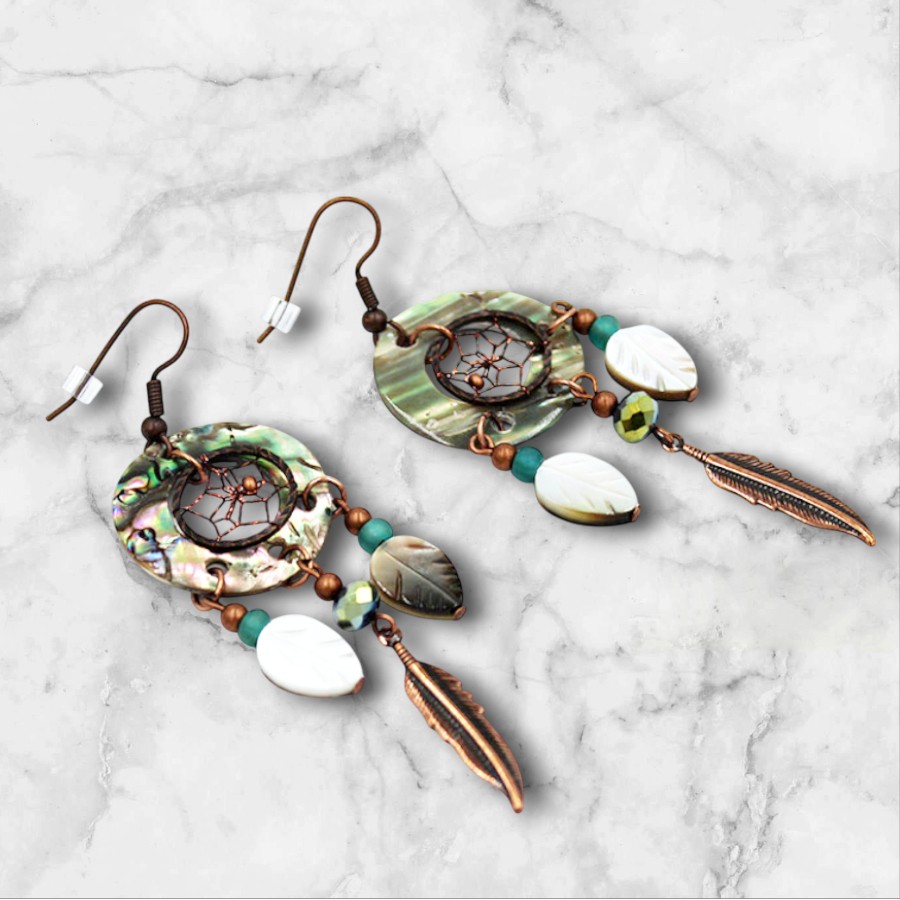 ■商品説明:ドリームキャッチャー発祥の地、北米オジブア族インディアンのハンドメイド作品です。夢の世界へ旅立つ魂のお守りであるドリームキャッチャーを形どったアクセサリーです。