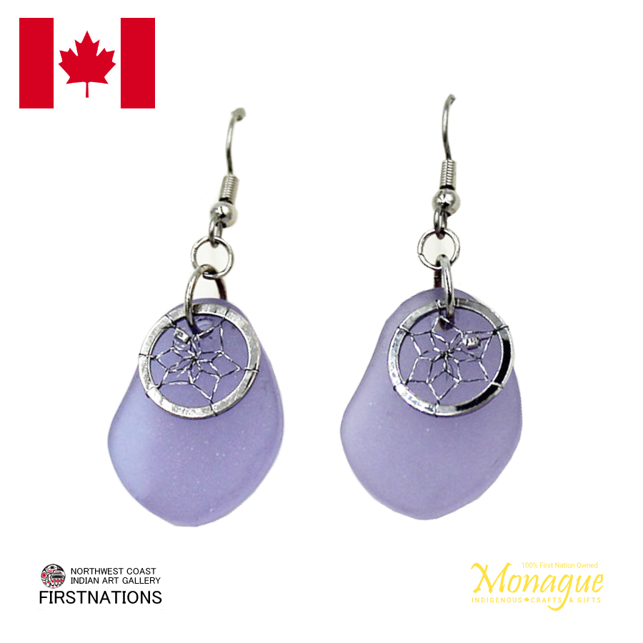 ■商品説明:ドリームキャッチャー発祥の地、北米オジブア族インディアンのハンドメイド作品です。夢の世界へ旅立つ魂のお守りであるドリームキャッチャーを形どったアクセサリーです。またシーグラスは、海岸や大きな湖の湖畔で見付かるガラス片のことで、波に揉まれて角の取れた小片となり、曇りガラスのような風合いでとっても可愛いんです。見た目によらず軽いので装着が楽です。