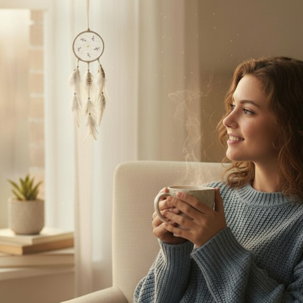 ■商品説明:パワーストーンを多く用いたドリームキャッチャーです。カナダ先住民インディアン、ドリームキャッチャー発祥の部族であるオジブア族のハンドメイド作品です。本物のネイティブスピリットの神聖なパワーが宿っています。東南アジアで作られたプラスチック製で軽量の偽物ではありません。ドリームキャッチャーは、北米インディアンに広く伝わる装飾品で、ベッドの上に飾って使う、夢の世界へ旅立つ魂のお守りです。悪い夢はシニュー糸を編みこんたクモの巣状の網に引っかかり、朝日とともに浄化され、良い夢だけが中央の穴を通りぬけ、羽根を伝って眠っている者に降りてくると言われています。途中に付けられたビーズなどは水滴を表しています。正しくは寝室の東側に吊るすと言われていますが、玄関やリビング等にインテリアで飾っても宜しいかと思います。例:悪夢を見ないよう/お守り/良い夢を見る/願いを叶えたい/お洒落なインテリア/ネイティブ系/西部劇風/プレゼント/誕生日/出産祝い/内祝い/新築祝い/引越し祝い/部屋の浄化/インディアン調/部屋のコーディネイト