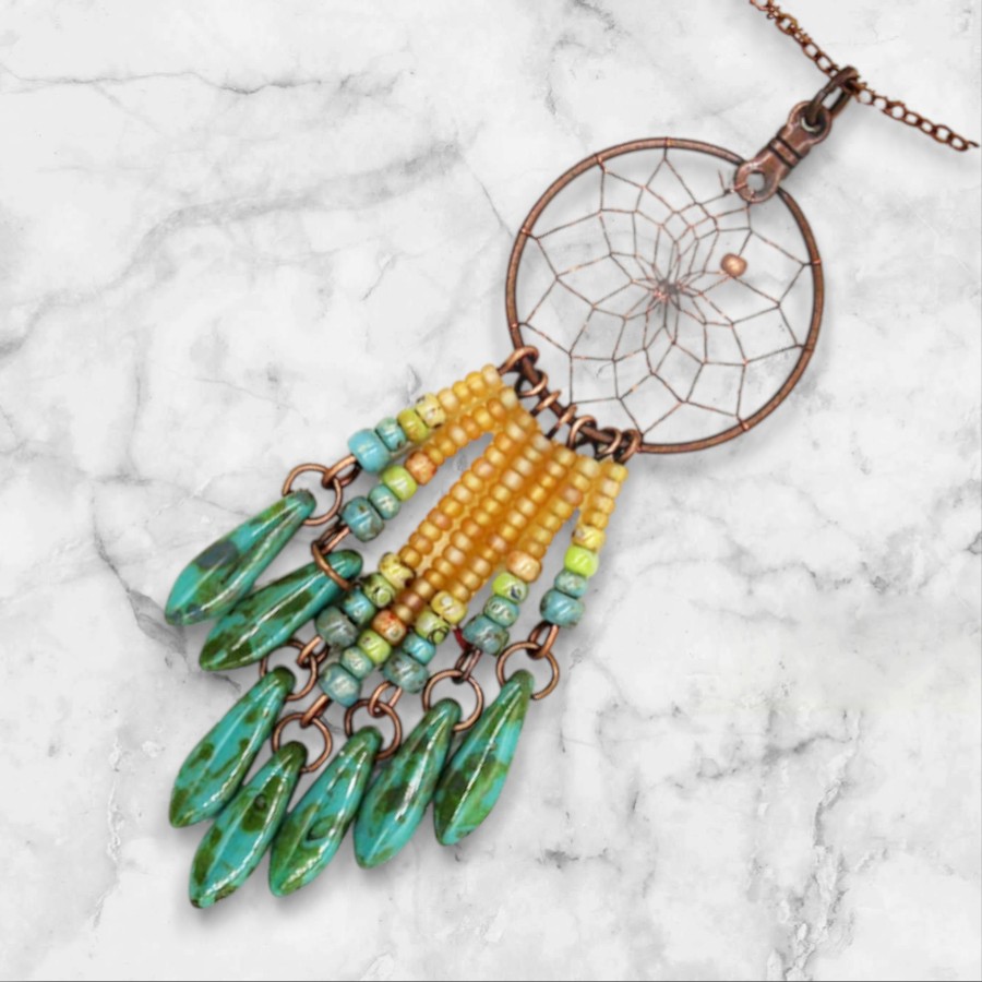 ドリームキャッチャー アクセサリー ネックレス 本物 オジブア族 インディアン 輪26mm クーパー ターコイズ ペンダント