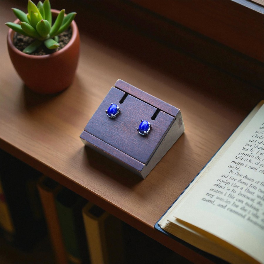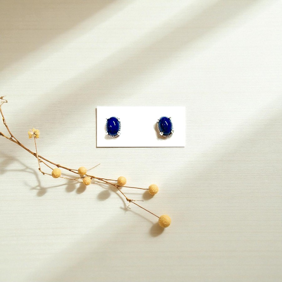 ■ 商品説明:深い群青色が印象的な天然石「ラピスラズリ」を使用した、上品で洗練されたピアスです。古来より「聖なる石」「真実を見抜く石」として世界中で大切にされてきたラピスラズリ。その神秘的なブルーが、耳元に凛とした存在感を与えます。枠にはSterling Silver 925を使用。シンプルながらも丁寧な作りで、日常使いからフォーマルシーンまで幅広く活躍します。