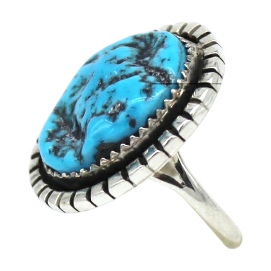 ■商品説明:このスターリングシルバーのスプリットシャンク・レディースリングは、フリーフォームのナチュラルキングマンターコイズストーンとラインカットのスクエアワイヤーボーダーをあしらっています。 ナバホ族の職人、ルトリシア・イエローヘアによって作られました。 石の大きさ、色の濃淡、形はそれぞれ異なります。