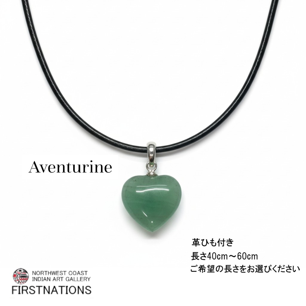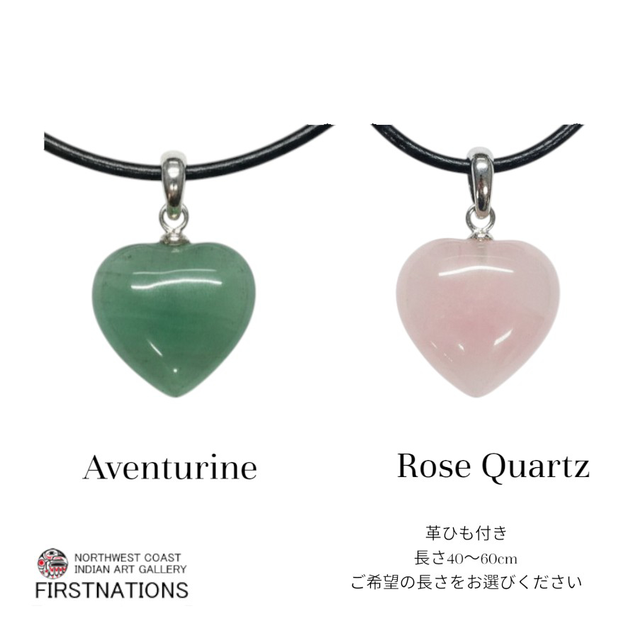 天然石 ジュエリー ネックレス アベンチュリン ローズクオーツ ハート型 ペンダントトップ 革ひも付き