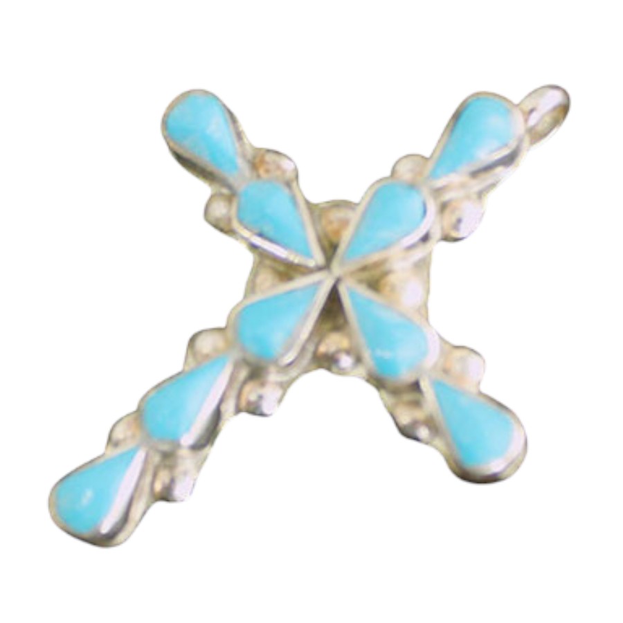 インディアン ジュエリー ペンダント ネイティブ アメリカン ZUNI ズニ族 Pino Yunie ターコイズ ティアドロップクロス ペンダント