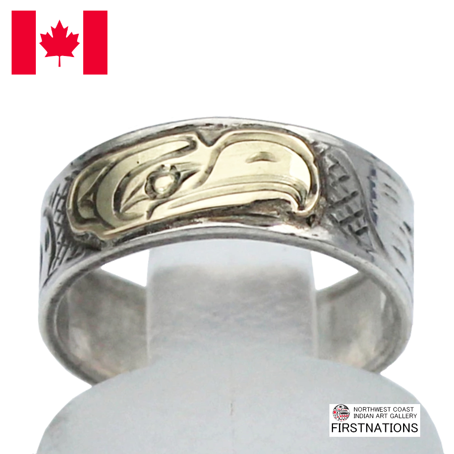 カナダ インディアン ジュエリー リング 指輪 先住民 ネイティブ 14金+シルバー925 Kwakwaka’wakw 部族 Victoria Harper イーグル Eagle 鷲 8.5号